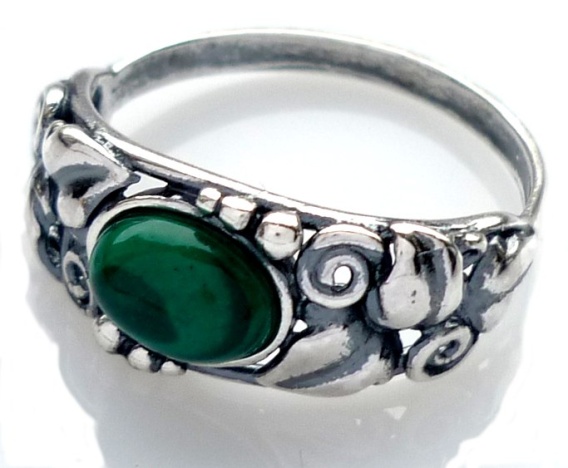 Pierścionek srebrny z malachitem Powój (rozmiar 20)